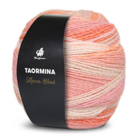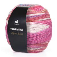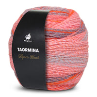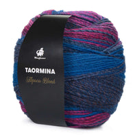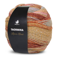 Agnethe blusen har et helt enestående snit, da den er strikket i vendestrik, ligesom strikkeretningen går på tværs fra sidesøm til sidesøm. Derudover gør garnet også noget helt specielt for blusens design, da det løbende farveskifte bygger yderligere facetter på blusens smukke design. Blusens for- og bagside består af to rektangler i retstrik, som strikkes med vendepinde. Med denne teknik dannes der i alt fire trekanter på hvert stykke, og det fantastiske mønster opstår. Opskriften guider dig godt igennem teknikken. Når trøjen skal monteres, sys for- og bagstykke sammen, og der strikkes op til ærmer i hvert ærmegab. Ærmekanterne og den nederste kant strikkes i rib, mens der laves retriller i halskanten. Agnethe blusen strikkes i det fantastisk farverige Mayflower Taormina, som er den skønneste alpakablanding. Taormina er derfor både helt enestående blød og slidstærk. Garnet har en unik opbygning, idet det indeholder flere forskellige farver i ét, som alle er nøje afstemt til hinanden og komplimenterer hinanden flot. Taormina har ét langt farveskift, som varierer mellem korte og brede striber i enten afdæmpede eller mere kraftige farver. Med dette design og det fabelagtige Taormina får du en helt unik strikkeoplevelse og ikke mindst Agnethe bluse. Størrelser: XS - S - M - L - XL - 2XL - 3XL - 4XL - 5XL Arbejdets overvidde, cm: 106 - 106 - 112 - 116 - 123 - 130 - 137 - 145 - 153 Hel længde, cm: 57 - 57 - 59½ - 62 - 64½ - 67 - 69½ - 72 - 74½