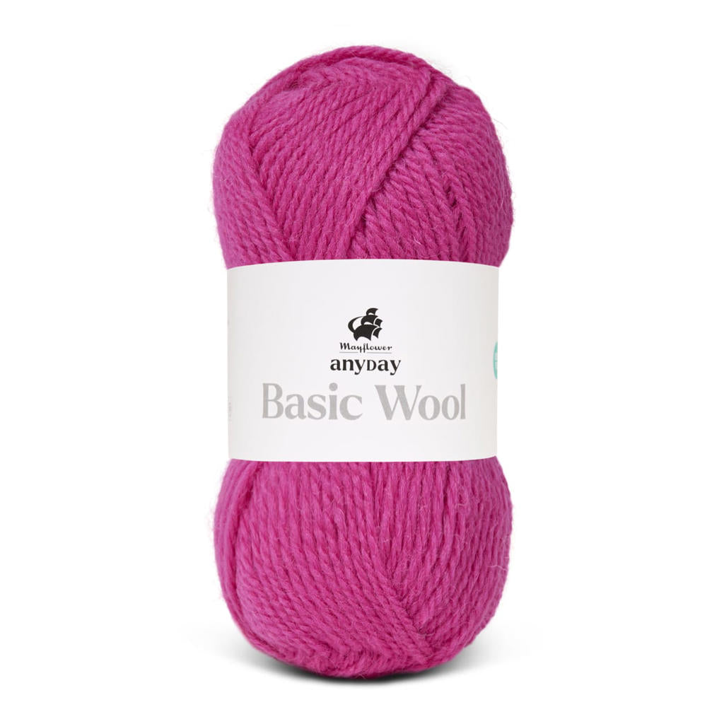 Garnet fås i mange forskellige farver, som også er flotte at kombinere. Basic Wool er en del af Anyday-serien, som består af prisvenlige garnkvaliteter.