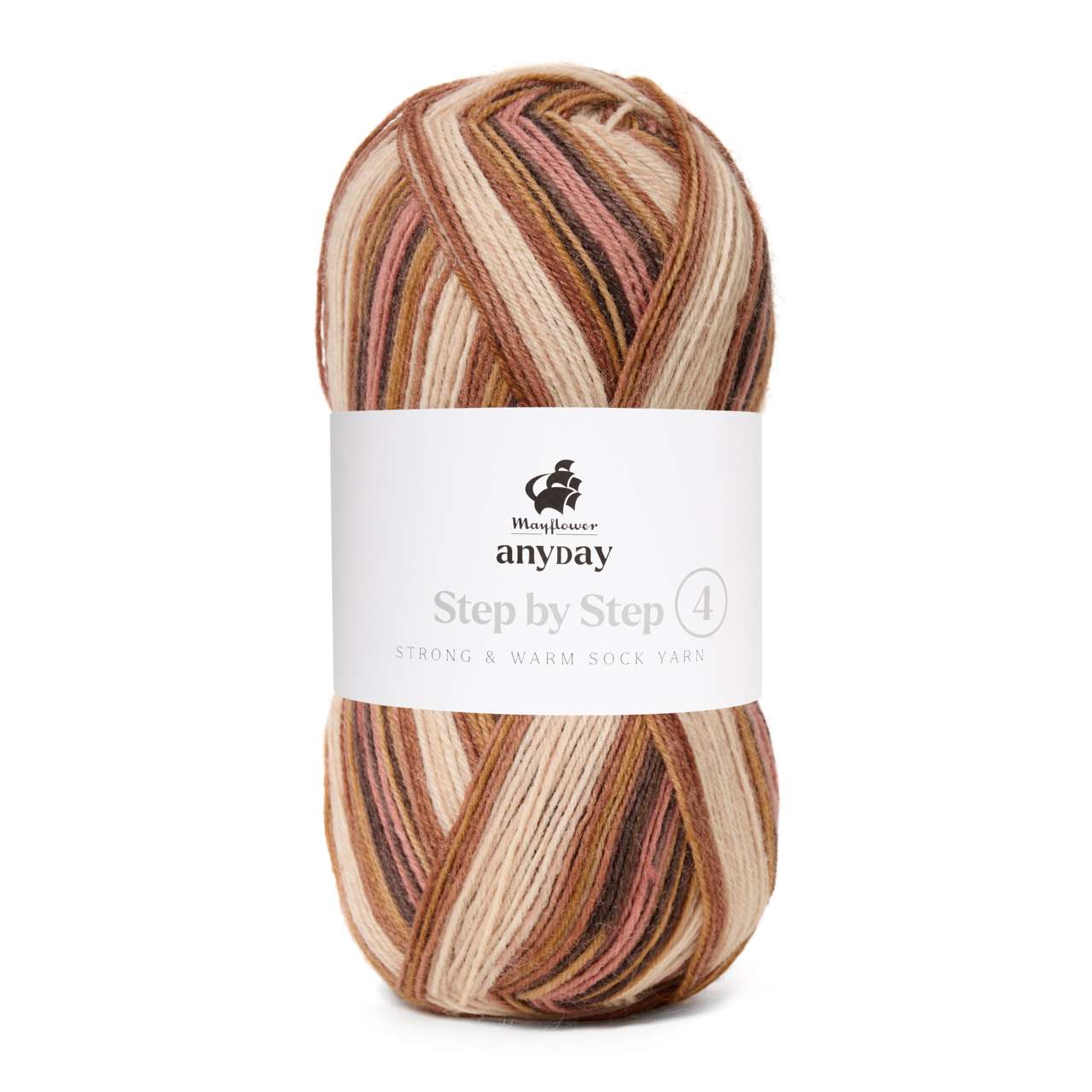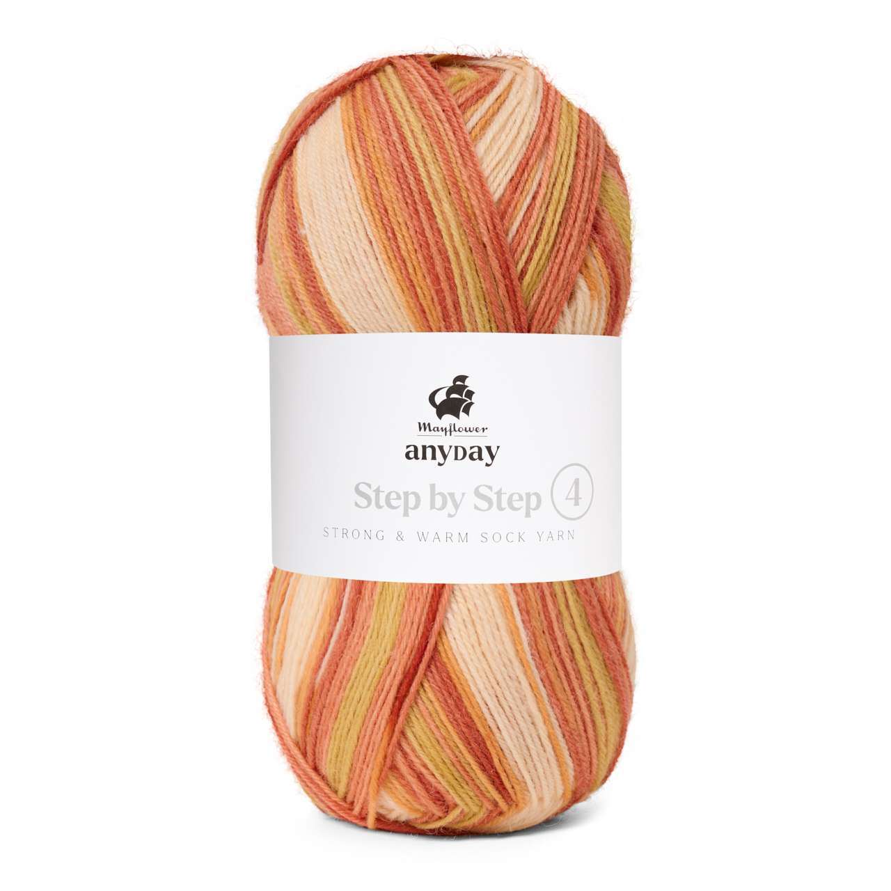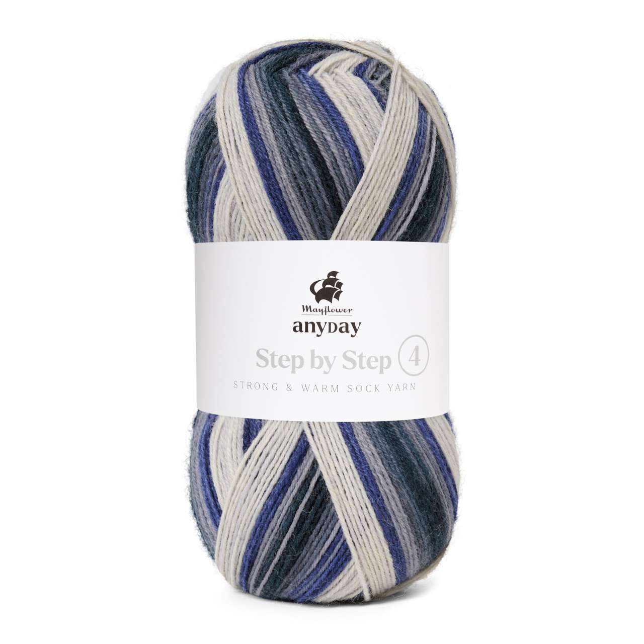 Mayflower Anyday Step By Step er et klassisk og blødt strømpegarn i god kvalitet. Garnet er spundet af sydamerikansk uld, hvis lange fibre gør garnet ekstra slidstærkt. Den lækre uld er lun og isolerende men stadig åndbar. Strømper strikket i Anyday Step By Step bliver derfor hverken for kolde eller for varme. Garnet har kontinuerlige farveskift, som giver det færdige resultat sit helt eget, farverige udtryk.