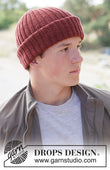 Strikket hue / hipsterhue til herre i DROPS BabyMerino. Arbejdet strikkes nedenfra og op i rib.