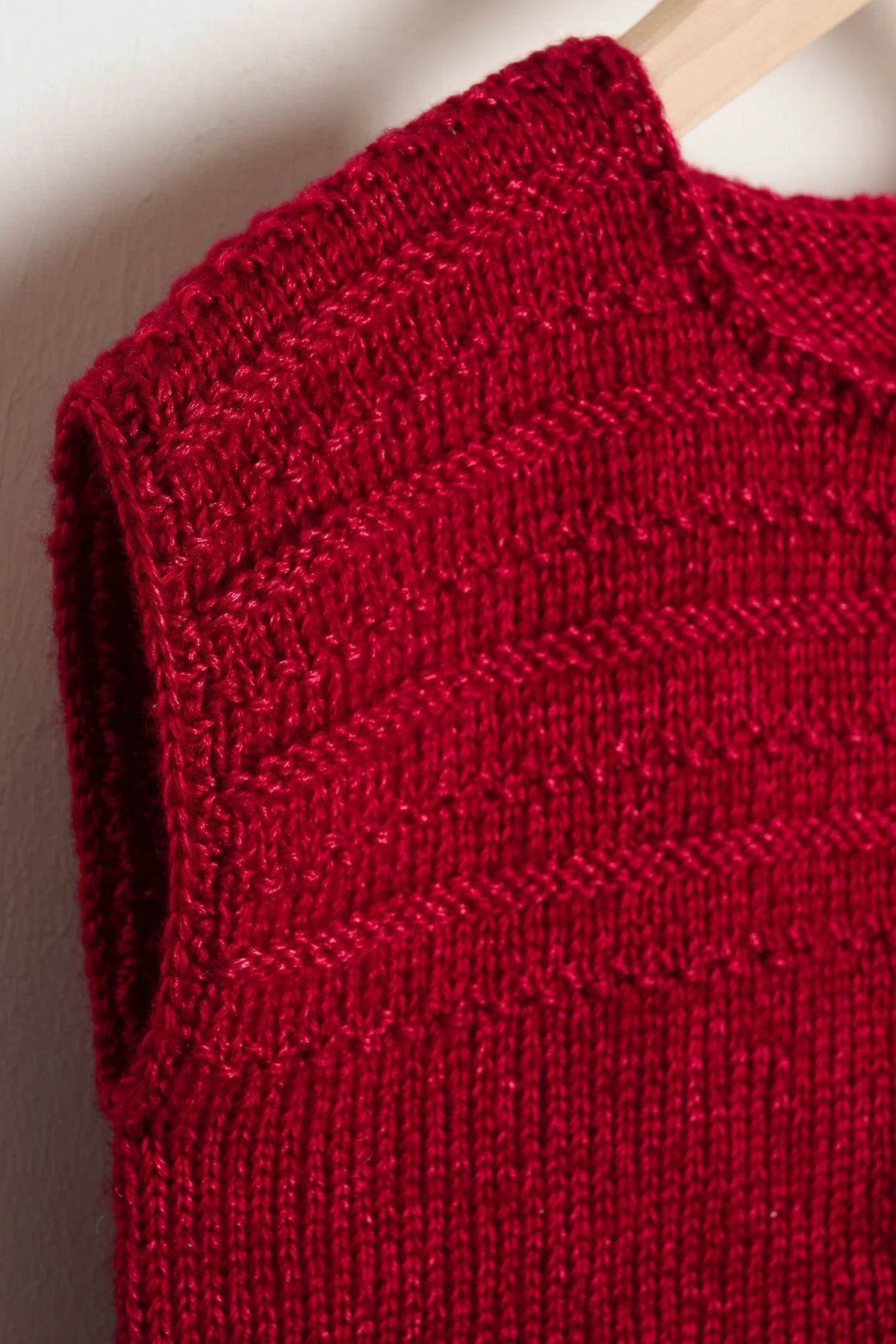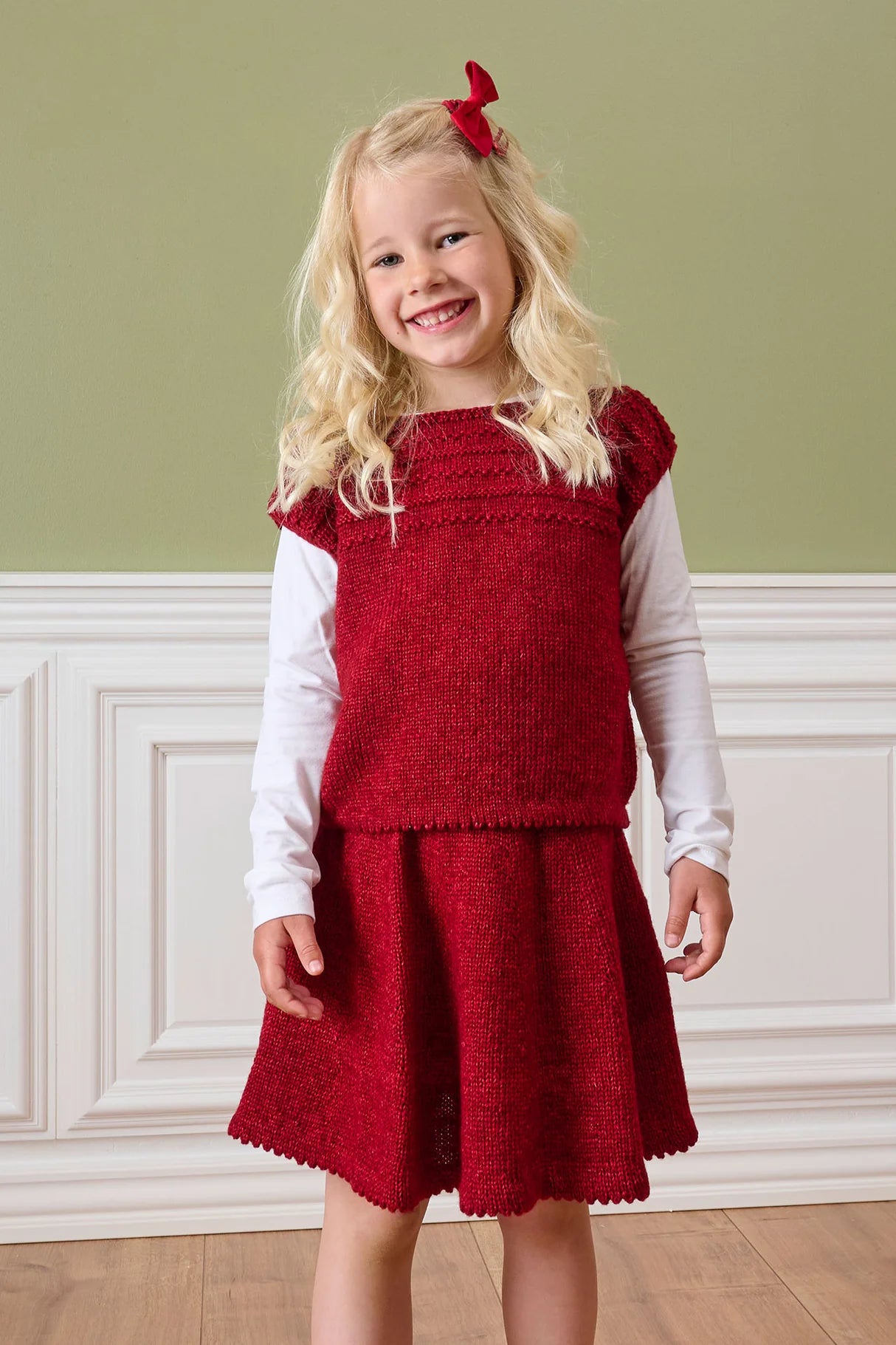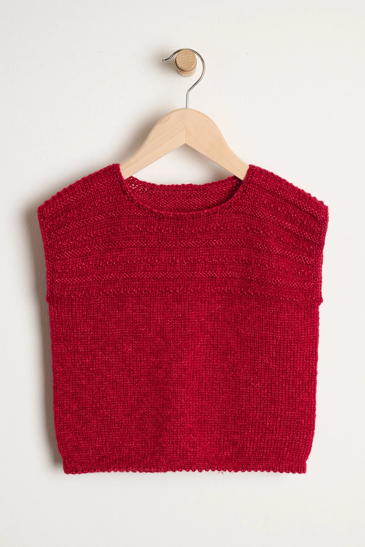 Fin og enkel top, som strikkes med et simpelt strukturmønster i bærestykket. Et mønster, som danner en fin kontrast til toppens glatstrik, og som går igen på både for- og bagstykke. Toppen strikkes nedefra og op med 2 tråde og har en flot afslutning i bunden i form af en takket kant. Bitten toppen strikkes med 2 tråde af det bløde og glansfulde Mayflower Anyday Diva, og toppen bliver derfor virkelig skøn og dejlig at have på. Størrelser: Str. 9/12 mdr. - 1/2 år - 2/3 år - 3/4 år - 4/5 år - 5/6 år Personligt brystmål, cm: 49/51 - 52/53 - 53/55 - 55/57 - 57/59 - 59/61 Arbejdets overvidde, cm: 56 - 60 - 64 - 67 - 69 - 71 Hel længde, cm: 28 - 30 - 32 - 34 - 36 - 38