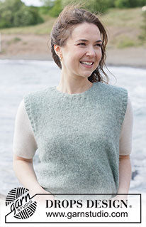 Strikket vest i DROPS Brushed Alpaca Silk. Arbejdet strikkes nedenfra og op i glatstrik med skrå skulder og rund hals. Størrelse XS - XXXL.