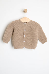Sød, lille cardigan, som strikkes topdown i et fint strukturmønster med udtagninger i bærestykket. Cardiganen monteres med knapper. Strikket i det bløde og lune uldgarn Mayflower Easy Care bliver cardiganen en god trøje til hele på året, da den nemt lade kroppen ånde. Garnet kan tilmed både vaskes i maskine og tørres i tørretumbler, så cardiganen er nem at holde. Størrelser: 3 mdr. (6 mdr.) 9 mdr. (1 år) 2 år (4 år) Arbejdets brystvidde, cm: 50 (53) 56 (60) 62 (66) Hel længde, cm: 25 (27) 29 (32) 35 (39) Ærmelængde, cm: 15 (17) 19 (22) 26 (30)