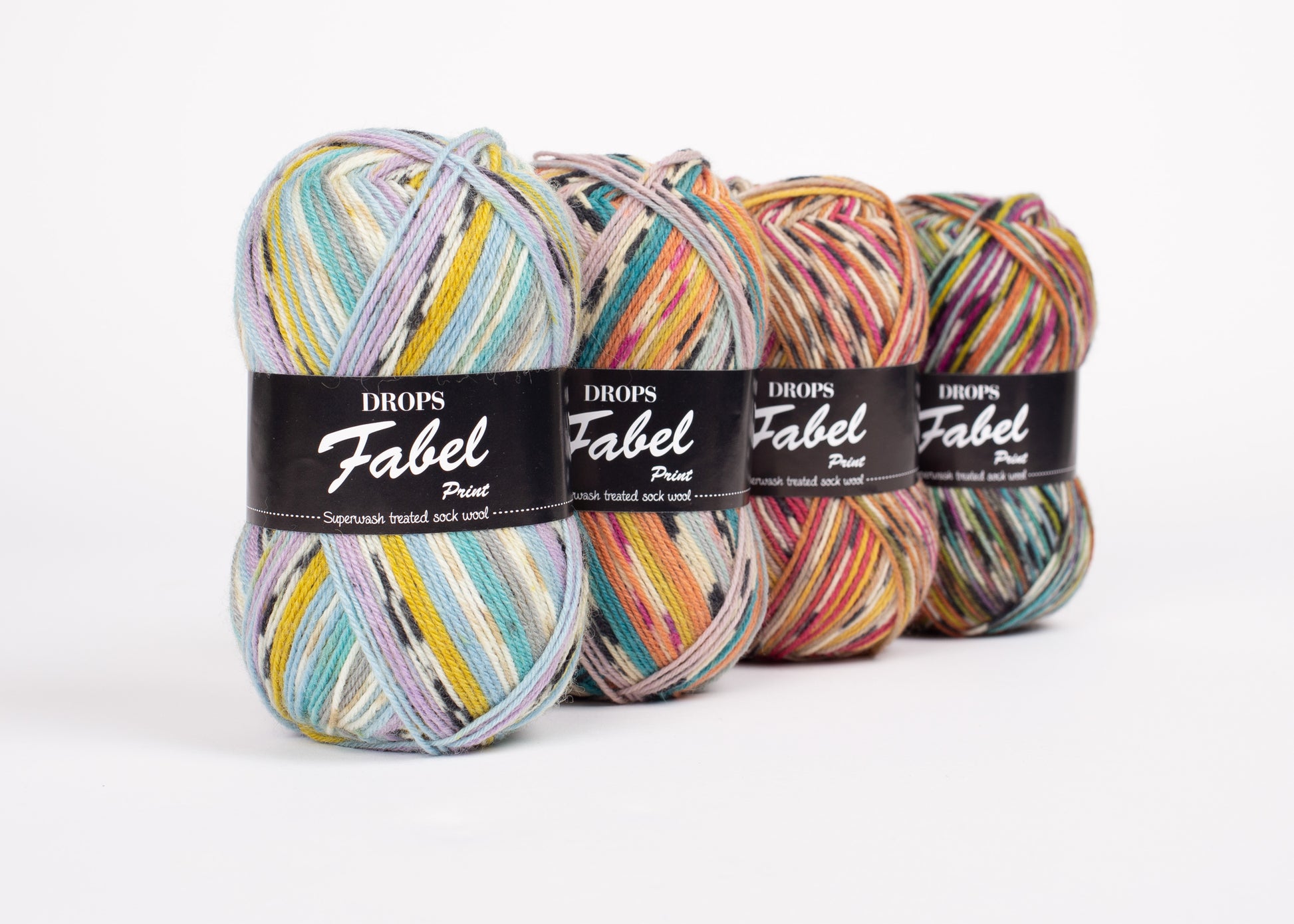 Slidstærkt som bare et strømpegarn kan være - DROPS Fabel er et 4 trådet garn som er superwash behandlet, så det let kan vaskes i maskine! I modsætning til almindelig strømpegarn er Fabel spundet i en blødere og finere uldkvalitet. Dette gør at Fabel egner sig til meget mere end bare sokker - prøv det til babystrik! Både Print og Long Print farverne er produceret med en metode som kaldes “fancy dyeing”, som er forskellig fra andre metoder ved at hvert farveparti har små variationer i både mønster og nuance. Dette er ikke en fejl, men en del av garnets egenskaber. De strikkede farveprøver som vises i farvekortet viser garnets melering når man strikker over færre antal masker, som f.eks strømper. På større modeller vil meleringen se anderledes ud. Som i alle meleringer kan der være farveforskelle inden for samme farve og parti. Dette garn er Oeko-Tex® certifieceret (certifikat nummer 25.3.0099), Standard 100, Class I fra INNOVATEXT TEXTILE ENGINEERING AND TESTING, HUNGARY. Det betyder at det er blevet testet og at det er helt fri for skadelige stoffer og er trygt at bruge. Class I er den højeste niveau hvilket betyder at det også passer fint til babyartikler (0-3 år).