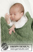 Strikket babytæppe i DROPS BabyMerino. Arbejdet strikkes frem og tilbage med hulmønster.