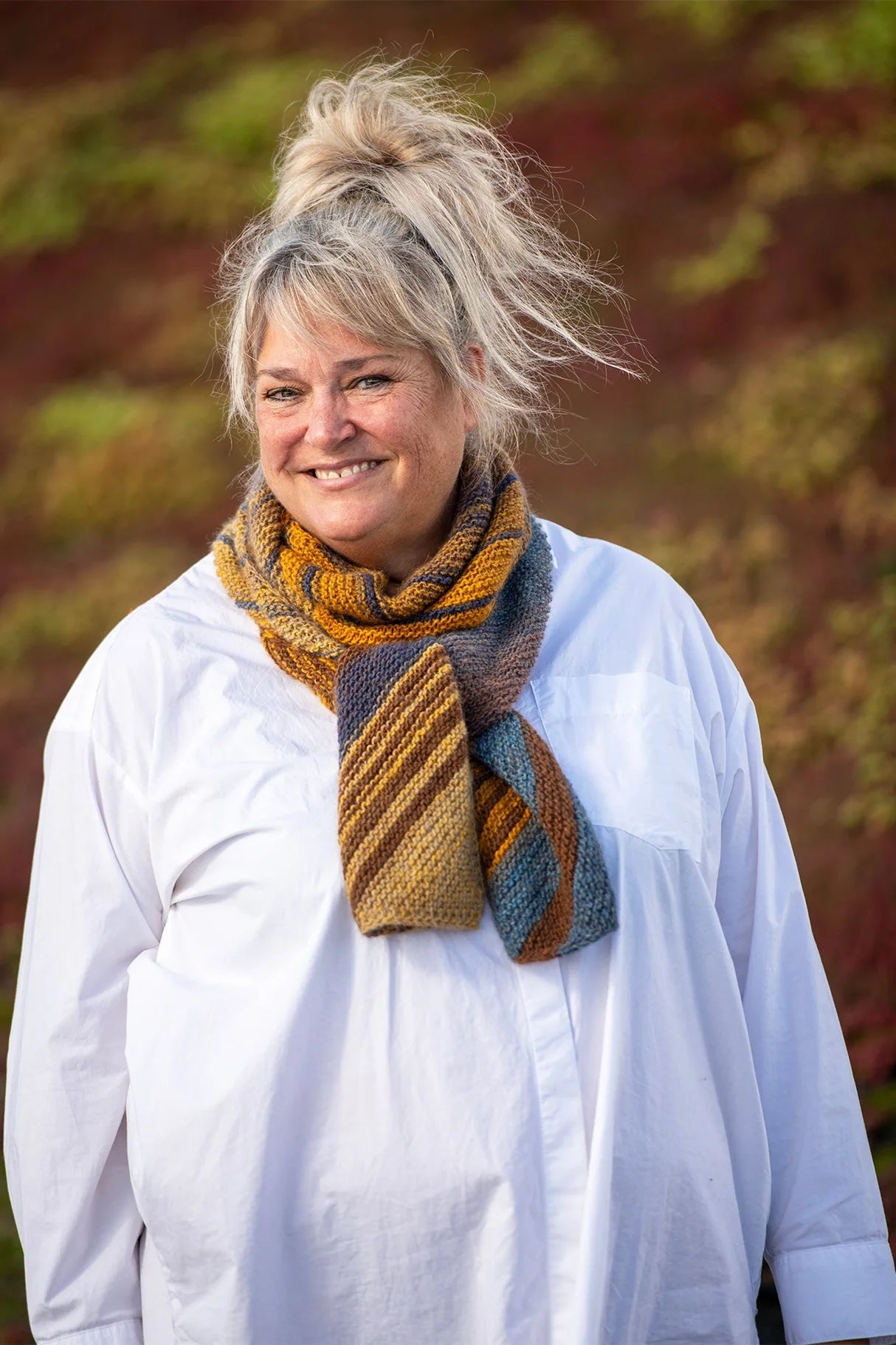 Det stribede mønster opstår naturligt, da tørklædet strikkes i Mayflower Taormina, som er spundet med flere farver i én lang mønsterrapport. Resultatet taler for sig selv. Tørklædet har en blød og lækker struktur, som ikke kun gør tørklædet enormt blødt men også smukt at se på.