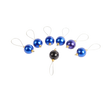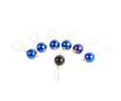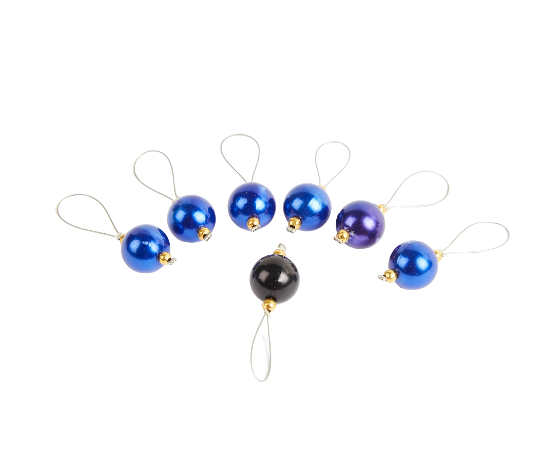 6 flotte blå perler, og 1 sort på nylonsnor.