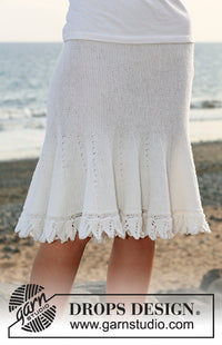 Retstrikket DROPS nederdel i ”Baby Merino” strikketfra side til side med forkortede pinde. Str S - XXXL