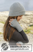 Strikket hue / hipsterhue og fingerløse hansker i DROPS Karisma med Ribstrik.