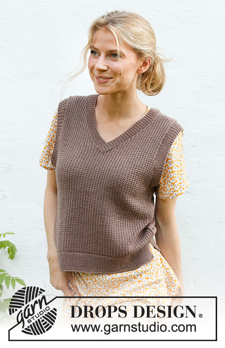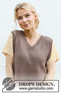 Strikket vest i DROPS BabyMerino. Arbejdet strikkes nedenfra og op med reliefmønster, v-hals og slids i siderne. Størrelse XS - XXL.
