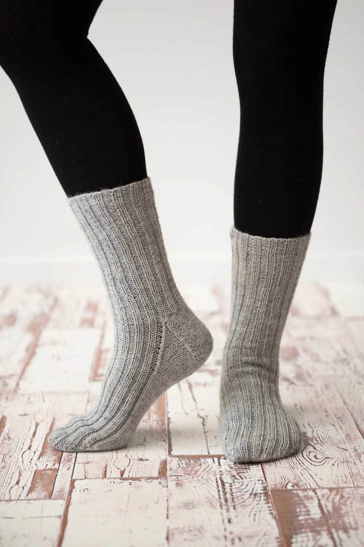 Lækre og varme strømper i ribstrik og med kilehæl i det skønne strømpegarn Mayflower 1 Class. Ribben på skaftet og ovenpå foden giver strømper en flot karakter og er et mønster, der er nemt for alle at strikke, når man kommer ind i rytmen. 1 Class er italiensk produceret strømpegarn i høj kvalitet. Det er spundet på god, sydamerikansk uld og består af 75% uld og 25% polyamid. Dette er den optimale fibersammensætning til strømpegarn, da ulden varmer, og polyamid giver høj slidstyrke. Du får med andre ord dejlig varme og behagelige strømper, som kan holde i lang tid, da garnet er spundet med lange fibre, hvilket giver øget slidstyrke.