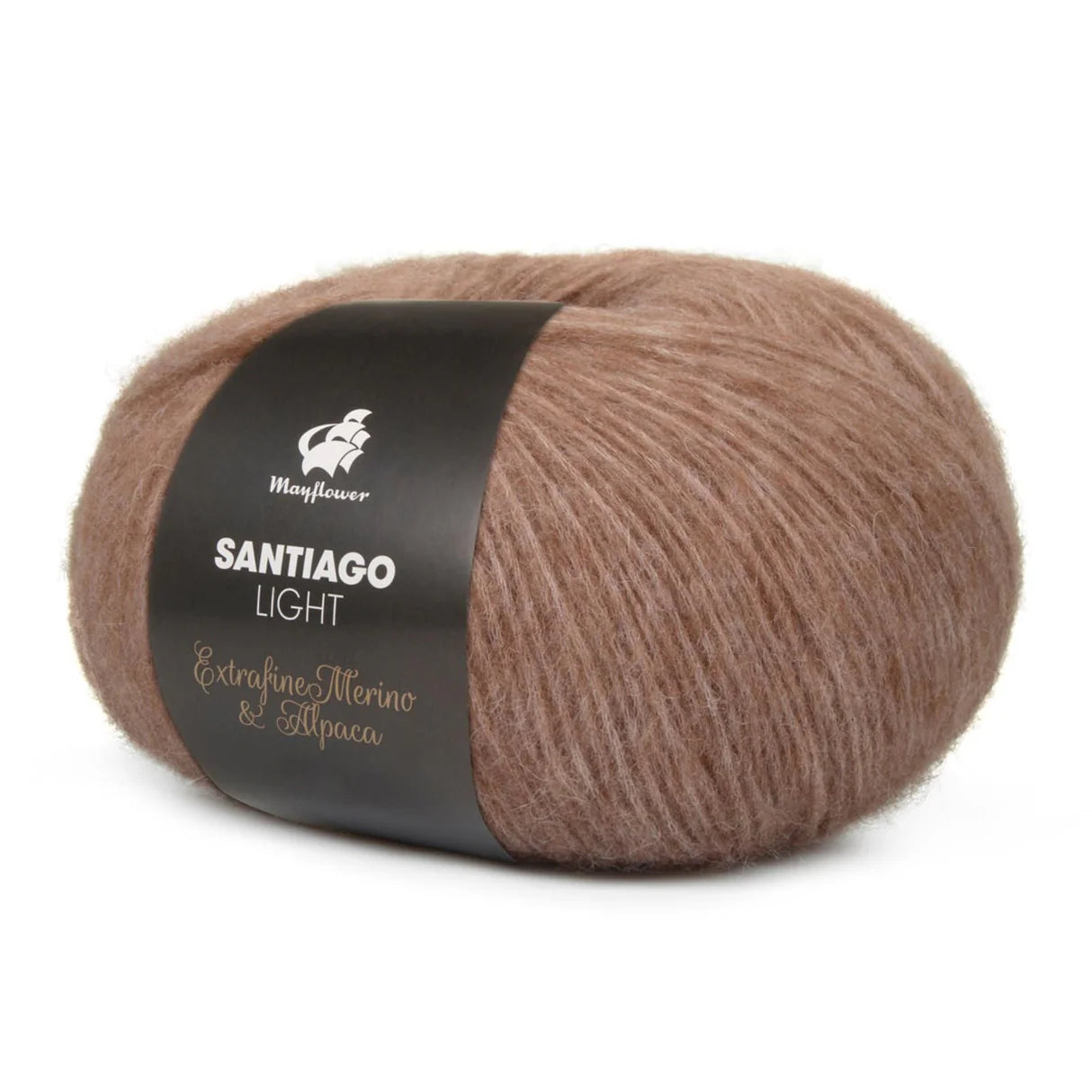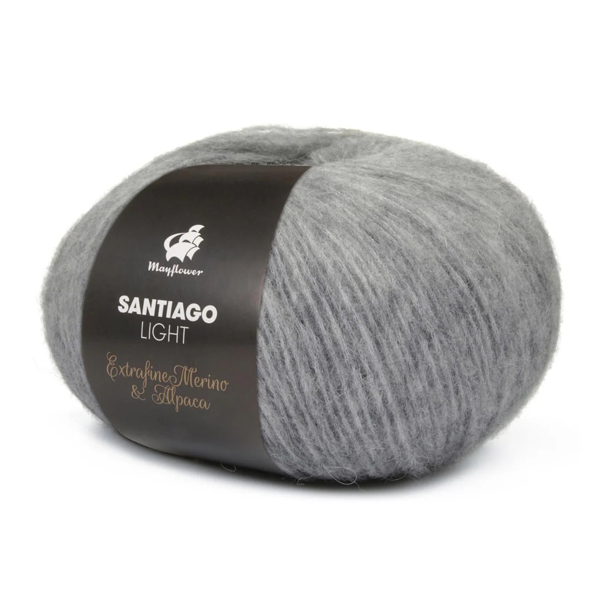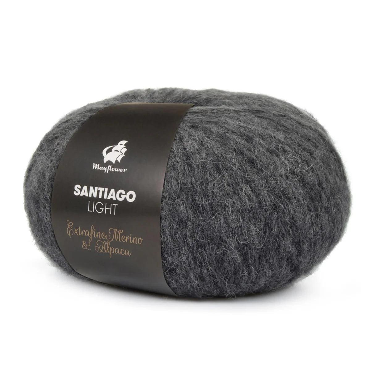 Santiago Light er et fantastisk blødt, let og luftigt garn af høj kvalitet. Det består af ekstra fin merinould, helt blød baby alpaka og genanvendt polyamid og har derfor en vidunderlig blødhed med en vamset og fluffy struktur. Farverne er melerede, hvilket giver strik og hækling et usædvanligt smukt farvespil.