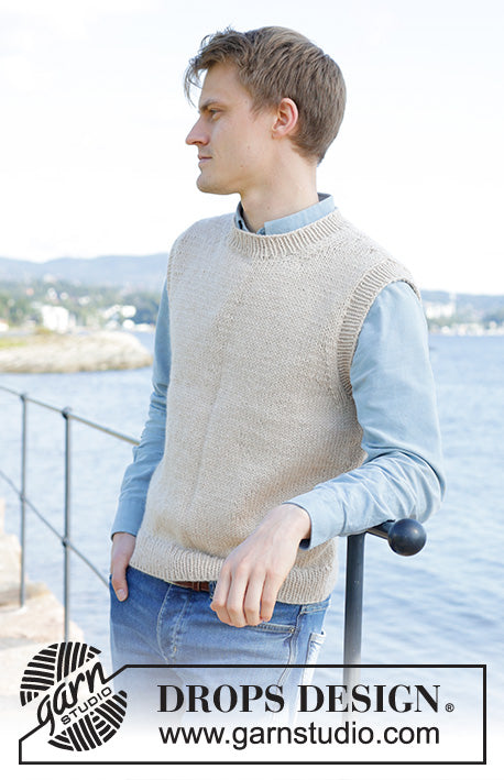 Strikket vest til herre i DROPS Nepal. Arbejdet strikkes nedenfra og op i glatstrik. Størrelse S - XXXL.